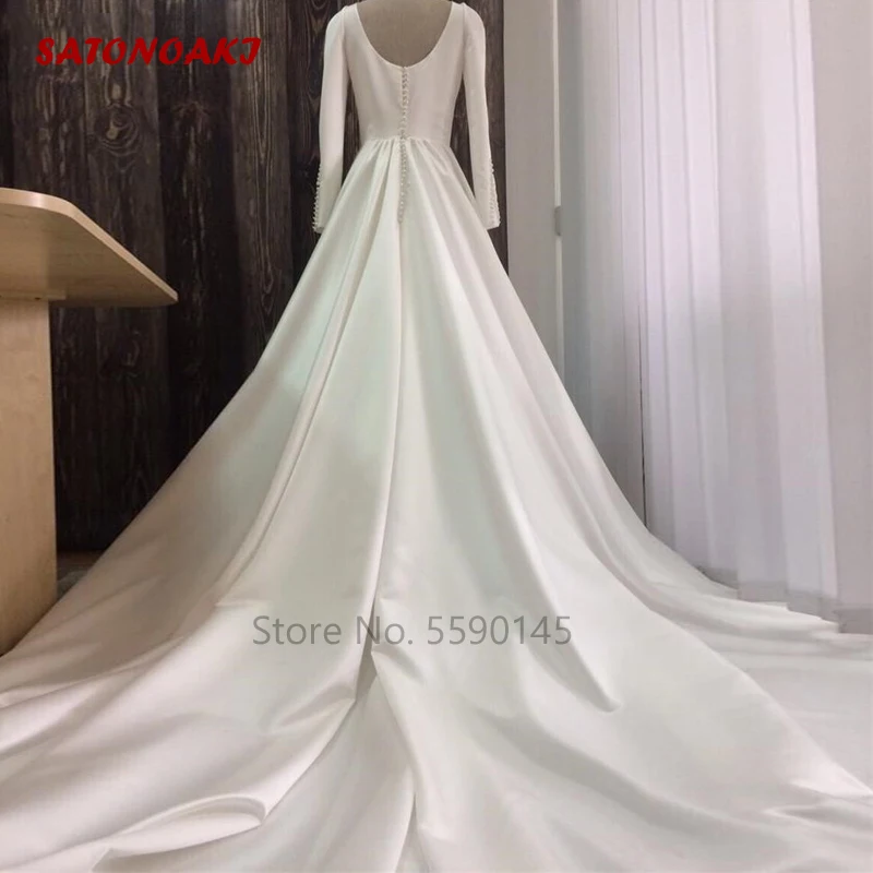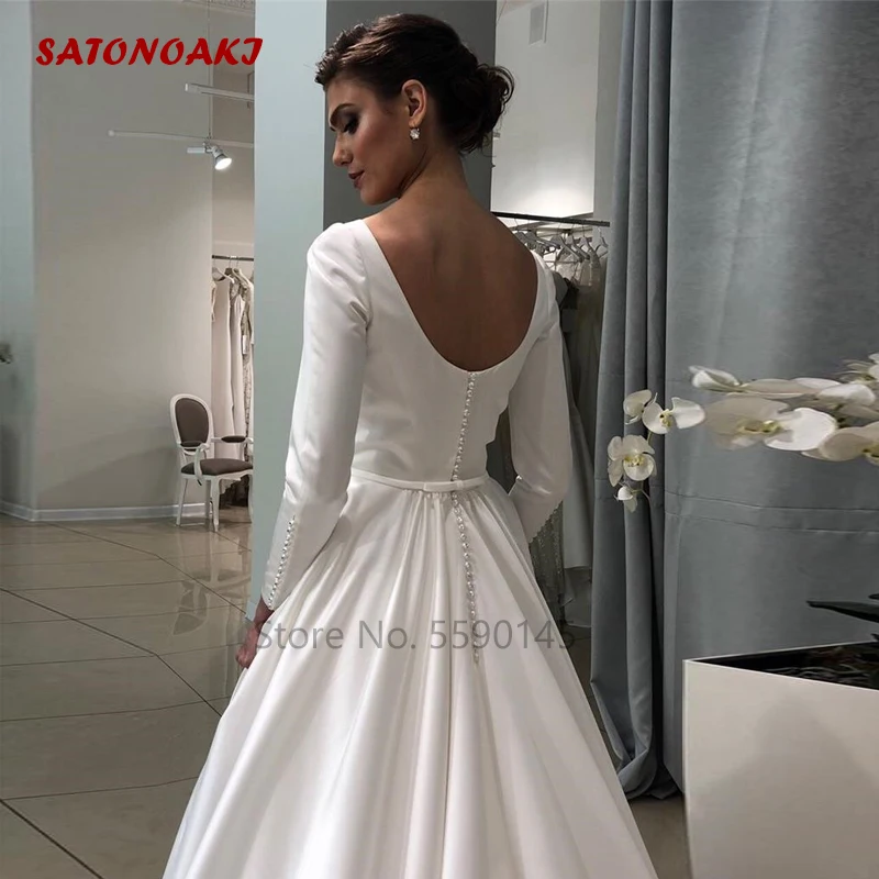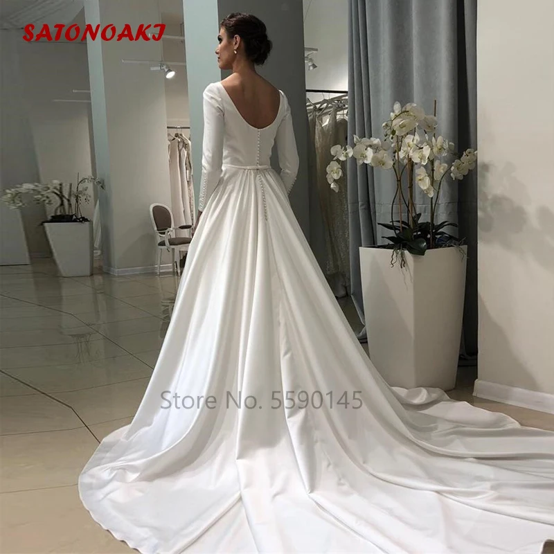 Женское атласное свадебное платье, ТРАПЕЦИЕВИДНОЕ ПЛАТЬЕ С Рукавом ...