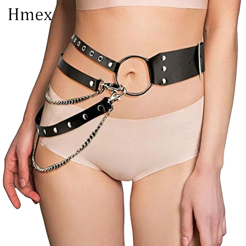 Модный сексуальный кожаный ремень в готическом стиле панк для женщин, большой металлический ремень с круглым кольцом, металлический обруч, Регулируемые поясные ремни для джинсов с серебряной цепочкой