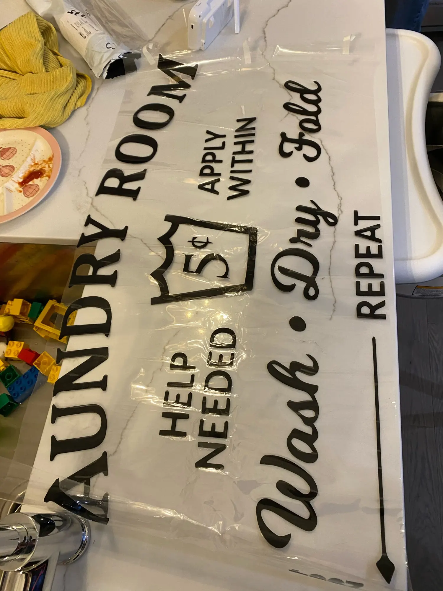 Наклейка неплохая, пришла за 3 недели, хорошо упакована, относительно легко наклеить. Кончики нескольких букв и ободок местами не хотел фиксироваться, возможно из-за того что клеила на рифленую плитку, клеем удалось немного зафиксировать.