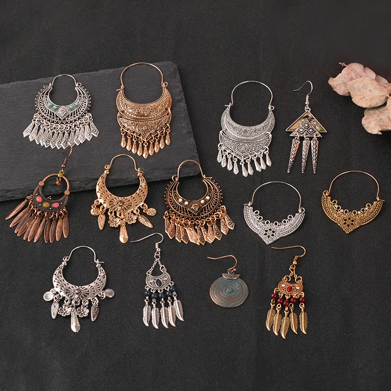 Индийские длинные серьги в фольклорном стиле, цветные металлические серьги-подвески с кисточками, винтажные этнические Висячие серьги, свадебные ювелирные изделия вечерние, женские аксессуары