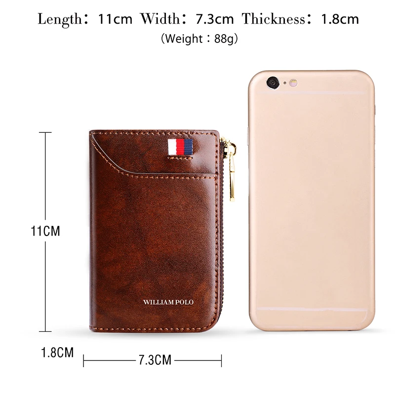 Мужской винтажный держатель для карт WilliamPOLO, кошелек из натуральной воловьей кожи с отделением для монет, 15 дюймов