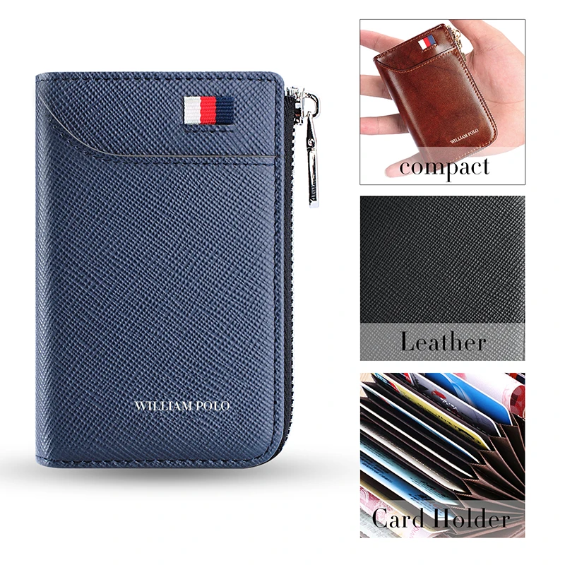 WilliamPOLO для мужчин кошелек типа «гармошка» кредитница из натуральной кожи маленькие нескольких карт чехол-органайзер на молнии бордовый цвет: черный, синий 15