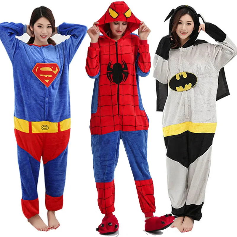 кигуруми Пижамы; коллекция 2019 года; Комбинезоны для взрослых; фланелевые Семейные Комбинезоны для мужчин и женщин; пижамы с Суперменом, Бэтменом, человеком-пауком; комбинезоны; зимние пижамы
