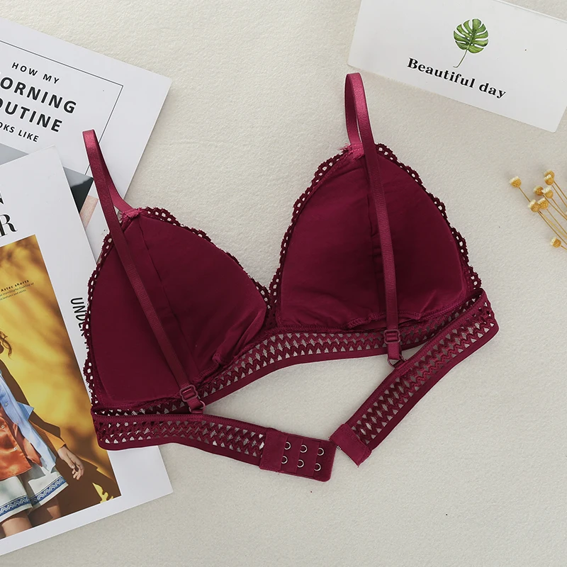 Кружевное нижнее белье, женский тонкий бюстгальтер, однотонный топ ...