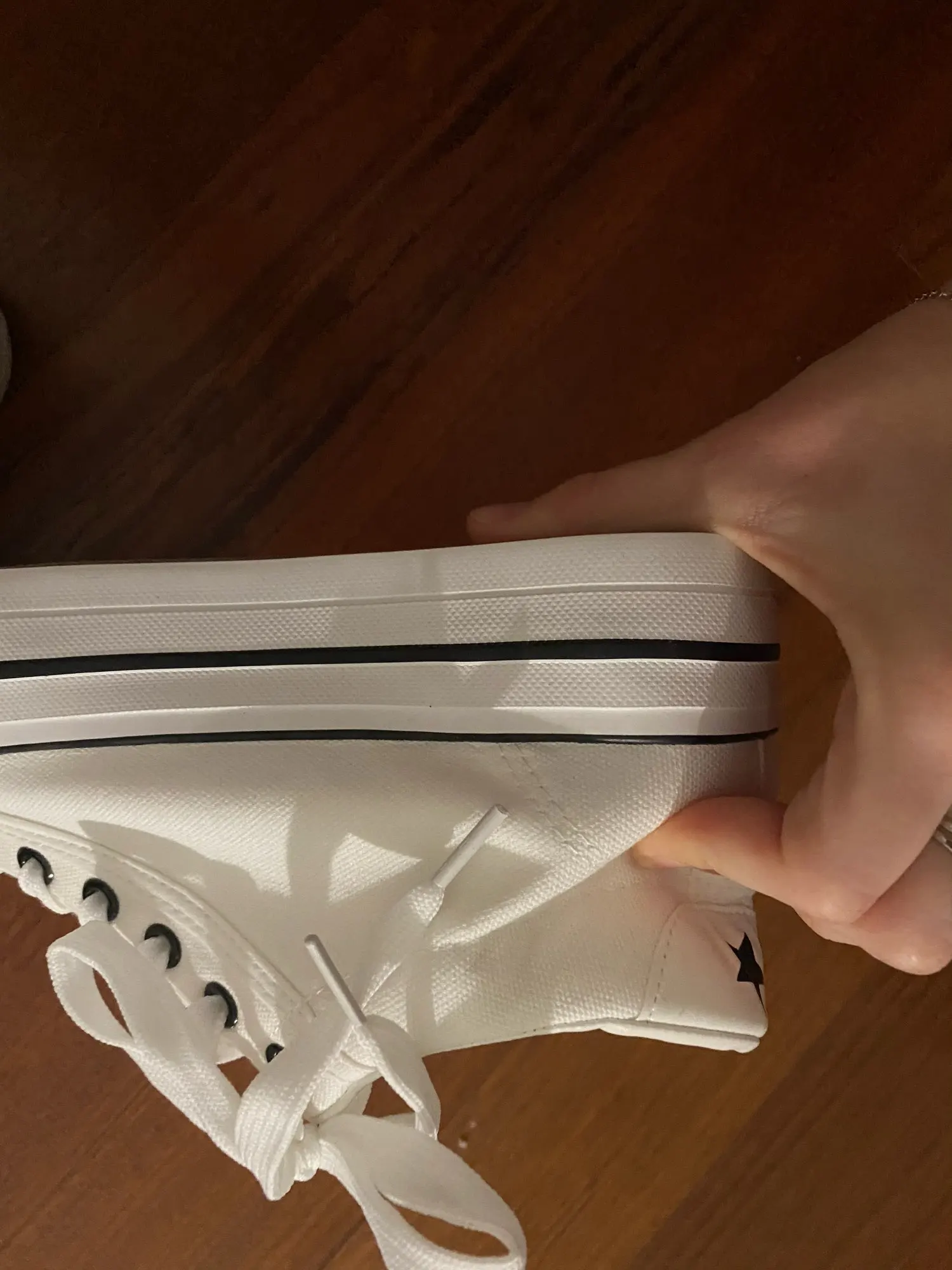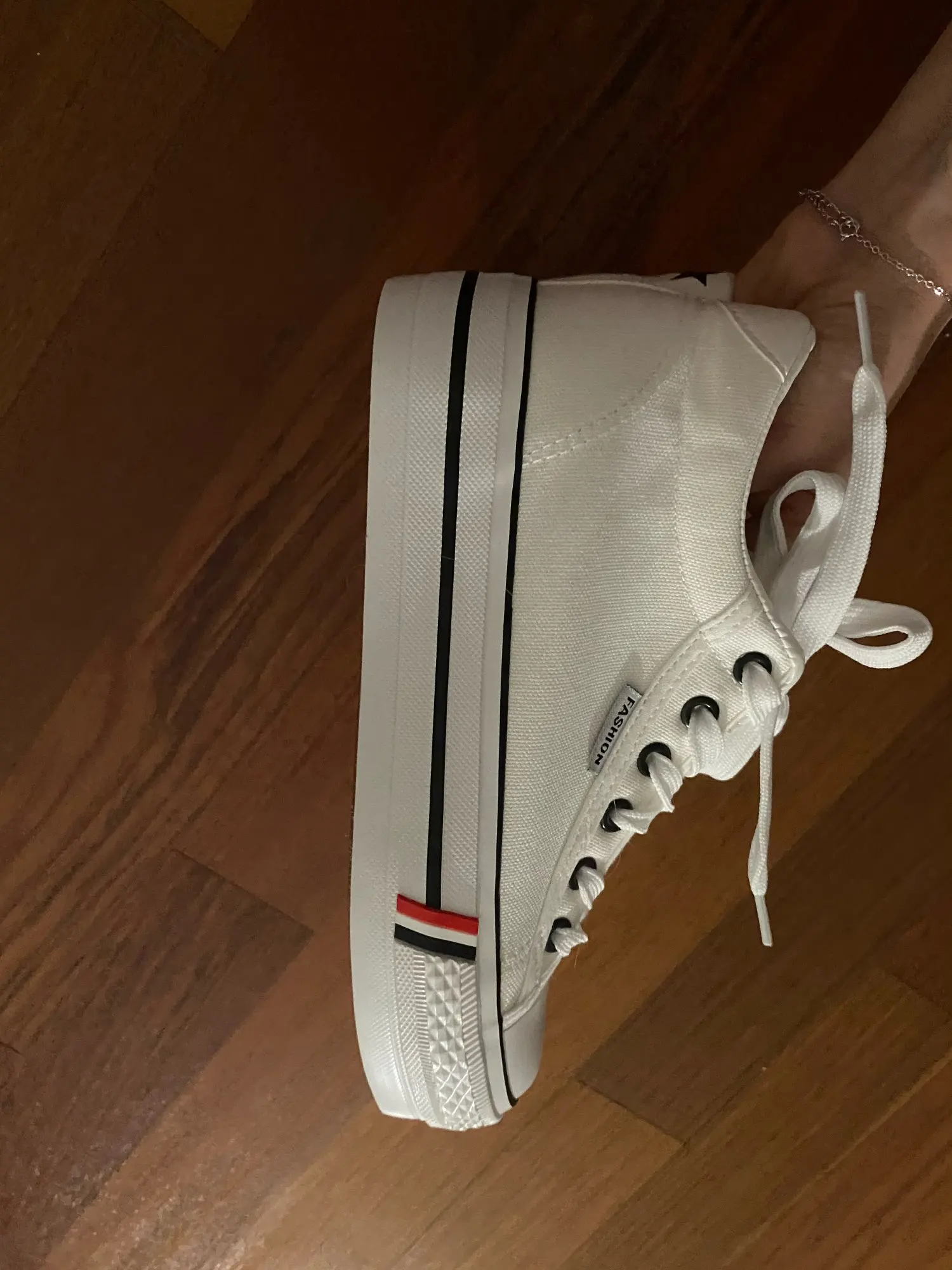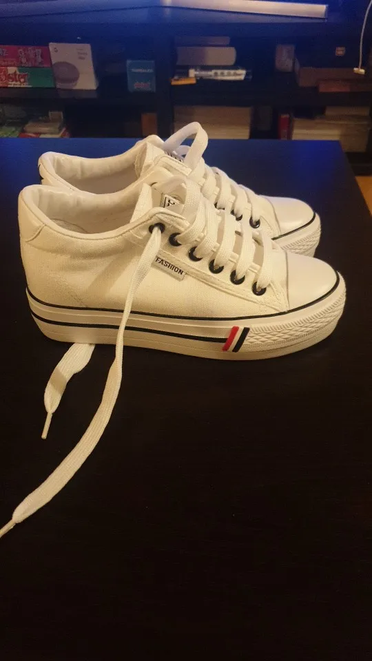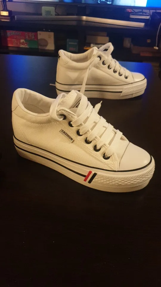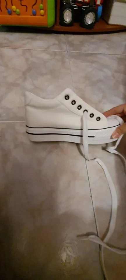 Выглядит как фотография, но скрытый каблук-это неверно. Он имеет только белую платформу с линиями. Соответствует точному номеру. Он прибыл быстро, через две недели.