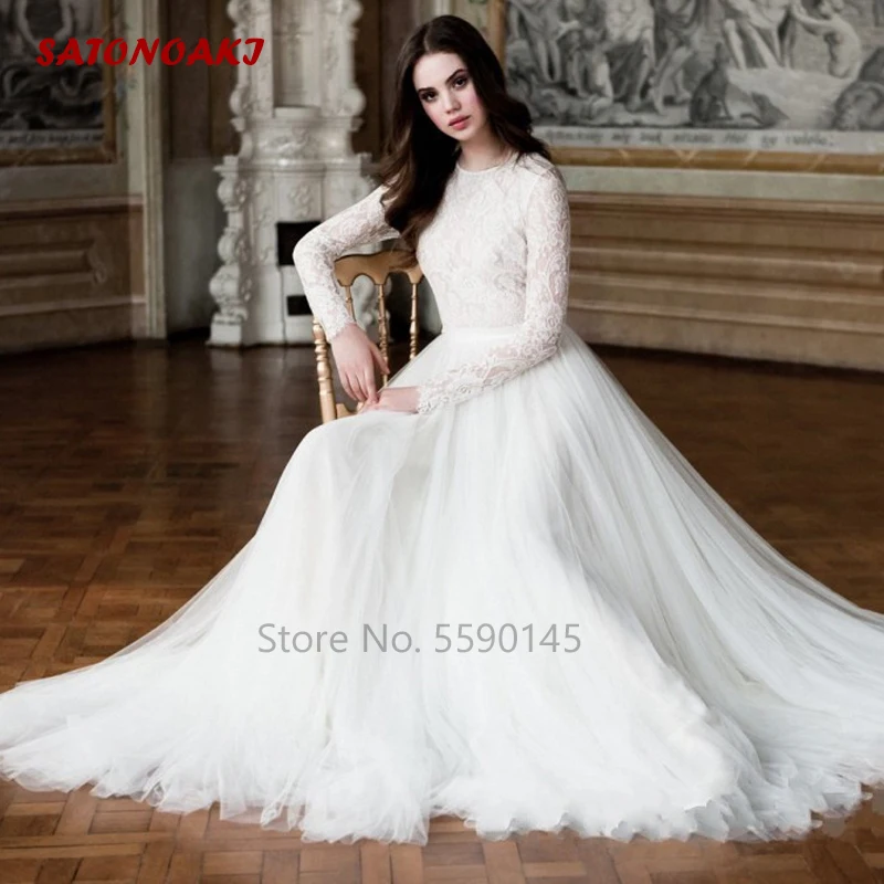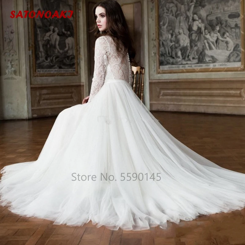Кружевное Тюлевое свадебное платье А-силуэта с длинными рукавами и закрытыми пуговицами, винтажное свадебное платье, индивидуальный пошив, женское платье