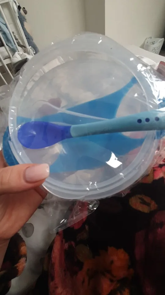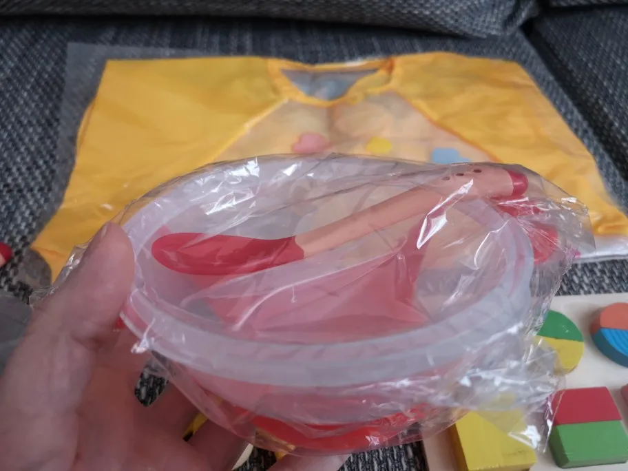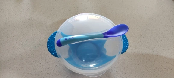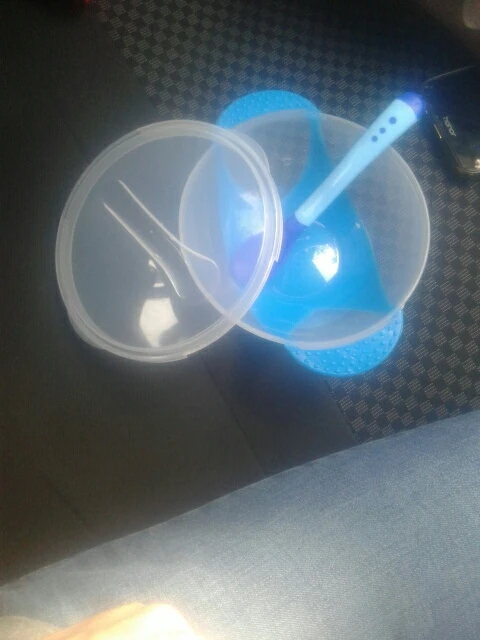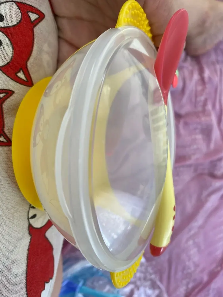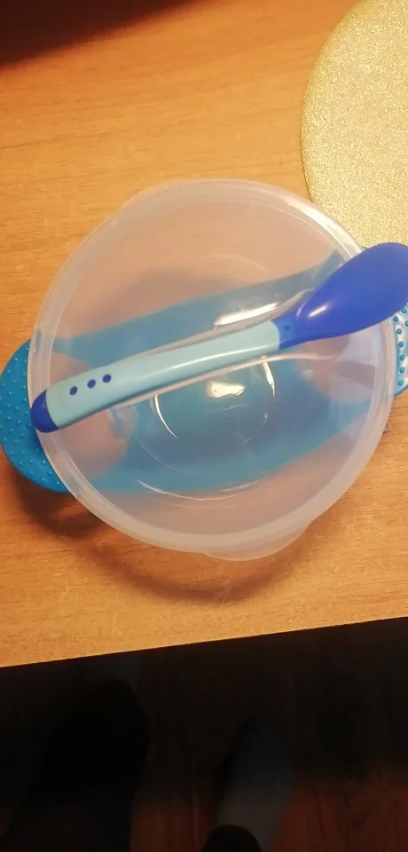 доставка долгая, но в срок защиты уложились. тарелочка неплохая, но присоска очень слабая, ложка белеет от горячего.