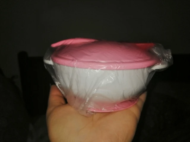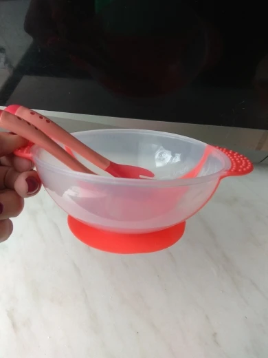 Красивая детская чаша и большой размер, Я так рад, что купил его, я только недавно начал использовать его для завтрака моего ребенка, и до сих пор я впечатлен, что мне не нужно жаловаться на то, что он хорошо сделан и хорошо моется. Я рекомендую этот товар, это заняло 2 недели, чтобы прибыть в Англию.