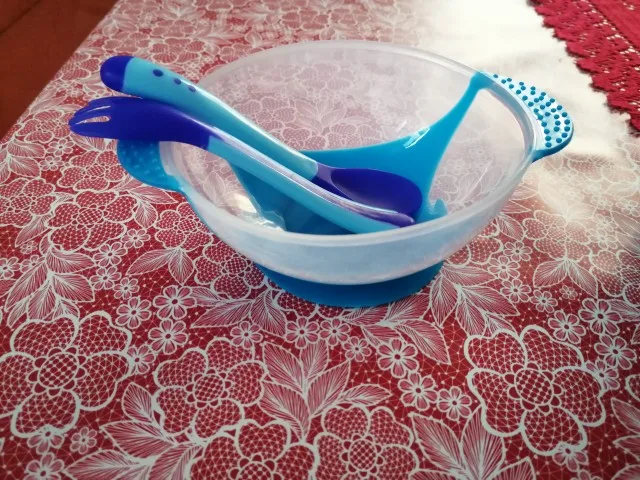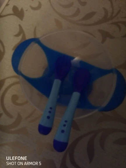 Хорошая тарелочка, вилка и ложка цвет меняют на горячем, присоска слабая ребёнок оторвет, но в целом покупкой довольна, посылка пришла быстро с отслежкой