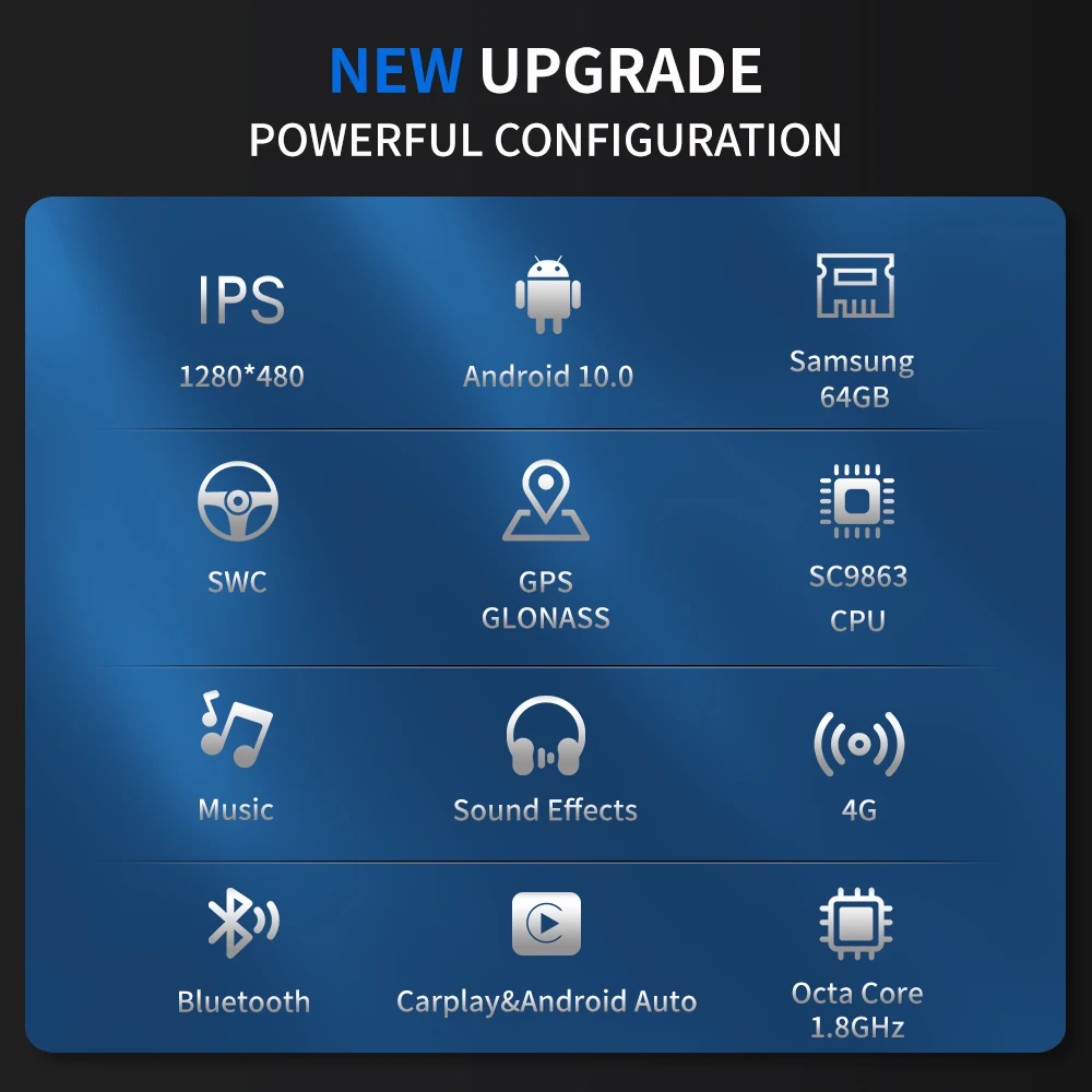8 ядро Процессор процессор/4GB Оперативная память/64GB Встроенная память/GPS Navi / Google/WI-FI/4G сим-карты/BT/Беспроводной Carplay/провода Android Авто/USB/музыка/видео/Разделение экран/Управление рулевым колесом/поддержка задней камеры/Поддержка оригинальной функции автомобиля/быстрая загрузка экрана