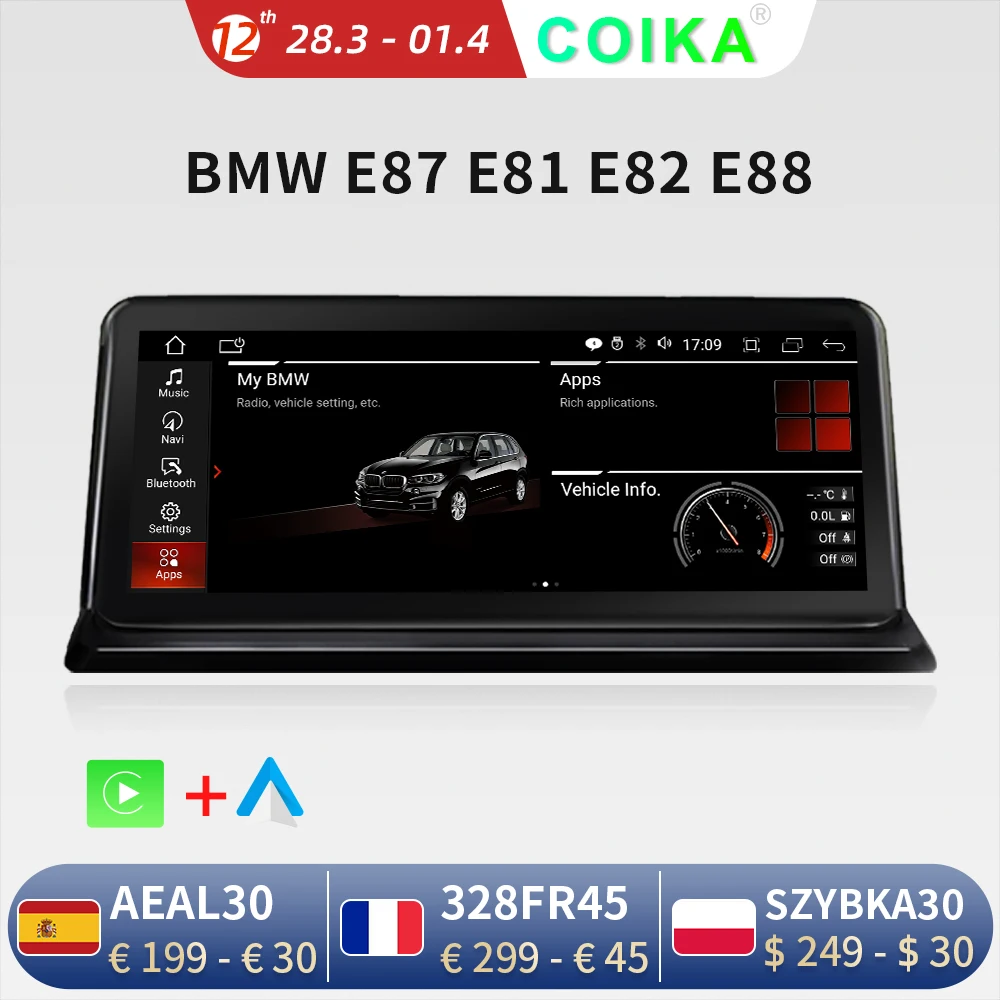 Автомобильная стереосистема COIKA IPS для BMW E87, E81, E82, E88, Android, 2 + 32 Гб ОЗУ, GPS-навигация, экран Wi-Fi, Google Carplay, Idrive, мультимедиа