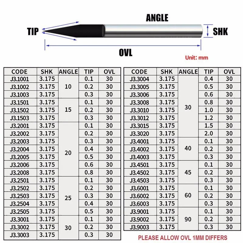 10 шт. 3,175 мм вольфрамовый резак V-образной формы карбидная печатная плата гравировальные Биты ЧПУ фрезерный станок выбрать размер J3.3001 акриловая фреза