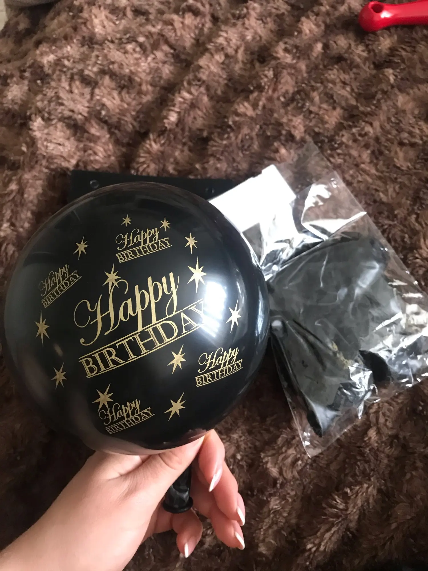 Все пришло в срок, и ко дню рождению успел. Товар соответствует описанию. Одна буква была перевёрнута и немного помялась, и немного не качественно нанесена другая буква, но думаю это не сильно страшно. Звезду за это не снимаю. Шары пока не надували, но надеюсь все будет хорошо. Отзыв дополню