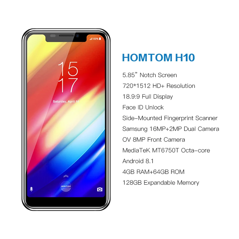 Оригинальный Homtom H10 5,85 "Android 8,1 MTK6750T Восьмиядерный мобильный телефон разблокировка отпечатков пальцев 64 Гб 3500 мАч 16,0 Мп 4G LTE смартфон