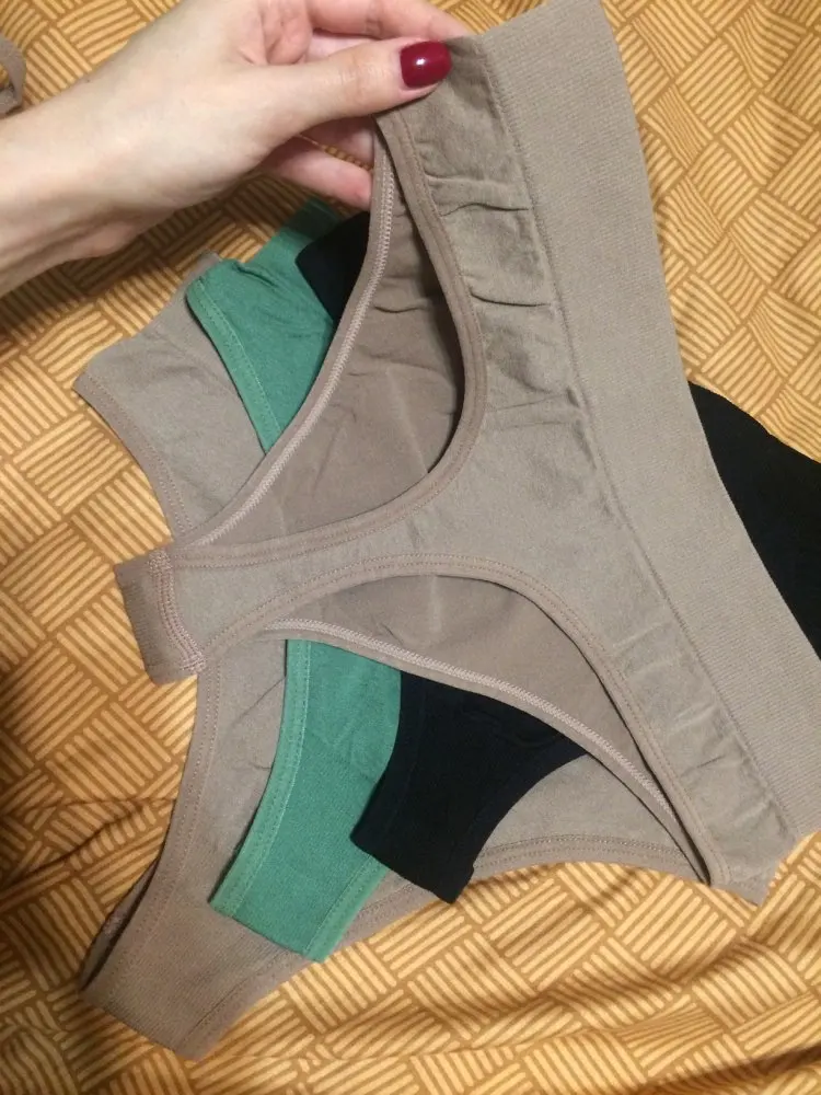 Цвет немножко темнее, чем на фото. Материал приятный, нитки не торчат. Сууупер удобно прилегает к телу, мне очень нравится)) буду заказывать еще, уже комплектами❤️. Еще продавец в родарок положил красную нить