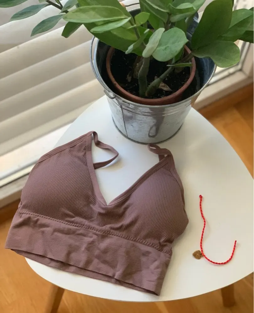 Топ прекрасен! Рекомендую брать. Всё аккуратно сшито, материал приятный, тянется. Были чашечки, но без них удобнее. Порадовало, что спина открытая и быстрая доставка. На размер одежды М подошло отлично. Ещё положили милый браслетик, жаль что коротковатый.