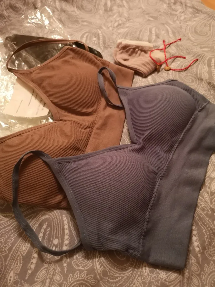 Очень красивый и мягкий бюстгальтер. Эластичные и удобные. К сожалению, подкладки очень заметны, несмотря на темный цвет верха. Возможно, если вы тоньше, лучше. Моя чашка 75C/D. Я сделал огромный заказ с продавцом, и я получил повязки и носки в подарок! Спасибо, я очень благодарен.