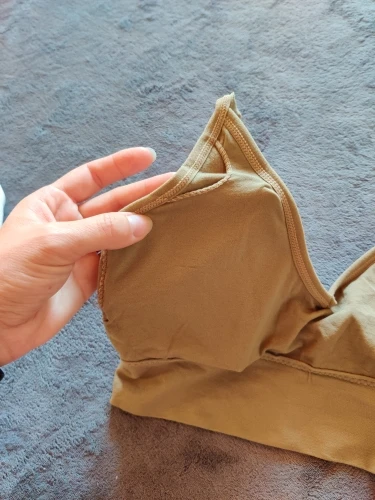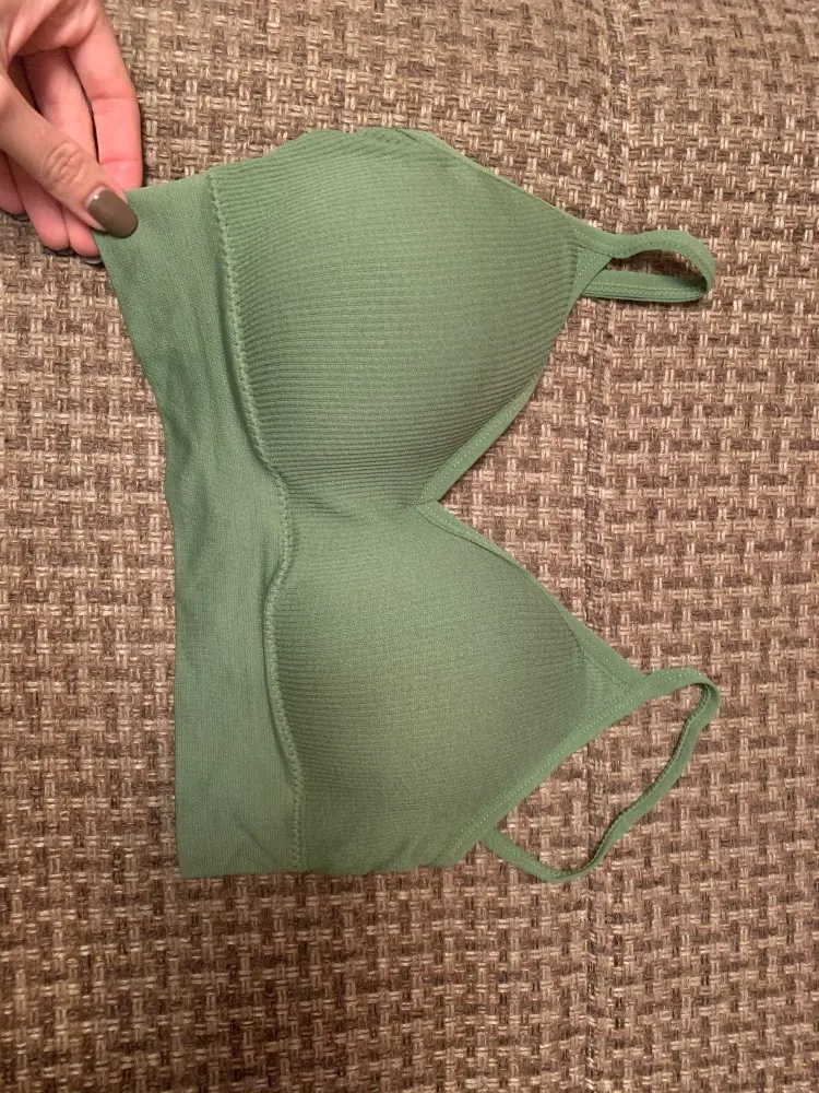 Бюстгальтер на ощупь отличный. Это дает хорошую поддержку, я буду чувствовать себя комфортно носить его для легкой физической активности, как йога. Задняя часть очень низкая, поэтому вы можете легко носить топы с низкой спинкой. Мне нравится носить его много и уже заказал один в другом цвете. Мой размер бюстгальтера 75 или 80A.