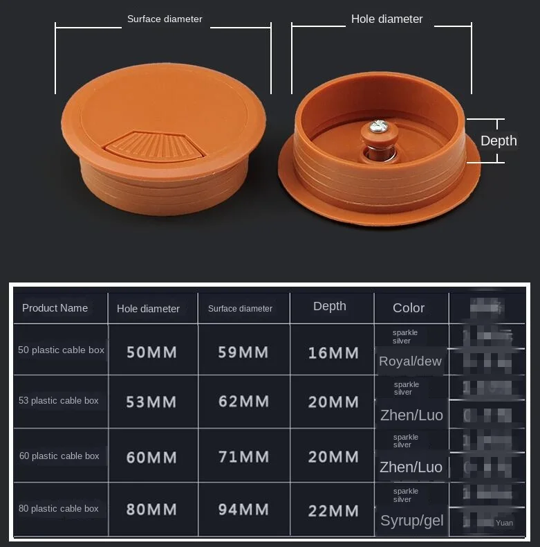 Особенности:100% новый и высокое качествоИнновация, практичность и полезность этого чехла для компьютерного стола и кабеля выполняются быстро и ярко.Дизайн с поворотным откидным верхом и пластиковым материалом, подходит для большего размера компьютерного кабеля.Идеальный аксессуар для установки кабеля на компьютерный стол, используется в офисе, дома, отеле, банке и т. Д. Посылка включает в себя:2 шт. X крышка с отверстием для провода