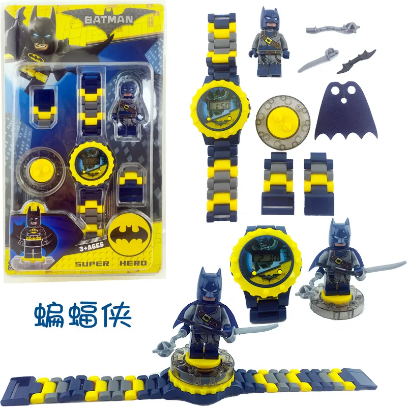 Игрушечные строительные блоки Человек-паук, мстители, детские часы с кубиками, совместимы с Legoingly ningjaoingly, супергероями, чудесные детские часы