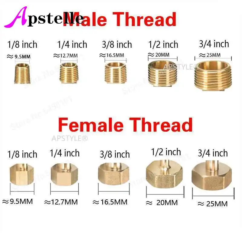 Размер резьбы:1/8 "(9,7 мм) 1/4"(12 мм), 3/8 "(16 мм) 1/2"(20 мм)Женский x мужской