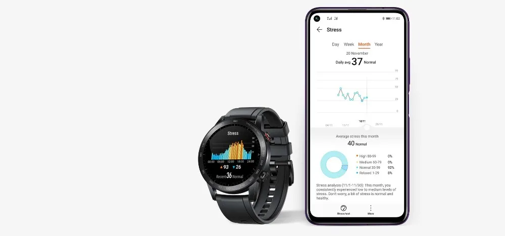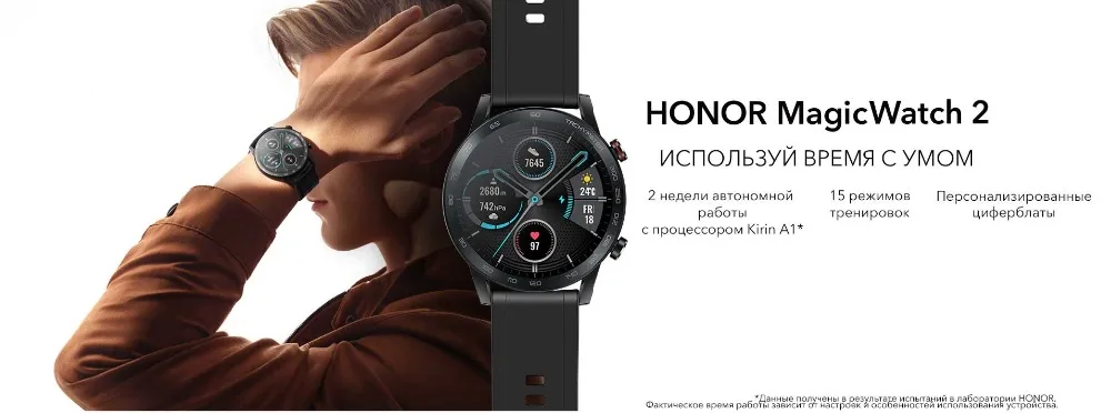 Умные смарт часы HONOR MAGIC WATCH 2 RU AMOLED экран, 455 мА*ч, 4 ГБ+32 МБ, мониторинг стресса