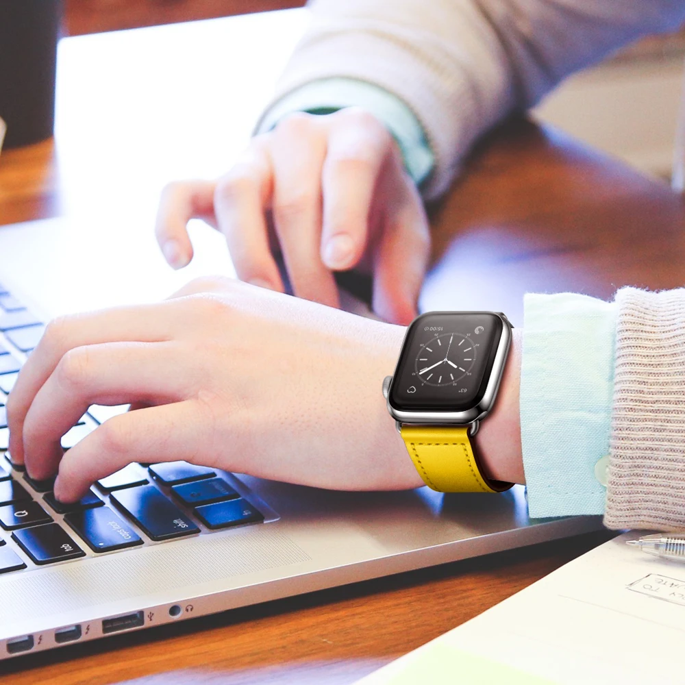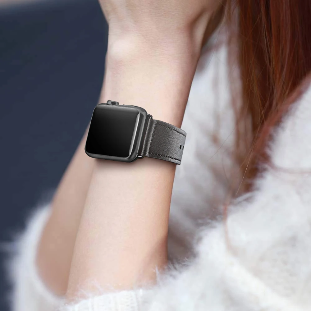 Ремешок из натуральной кожи для Apple Watch, черный кожаный браслет для iwatch 38 мм 42 мм, iwatch 40 мм 44 мм