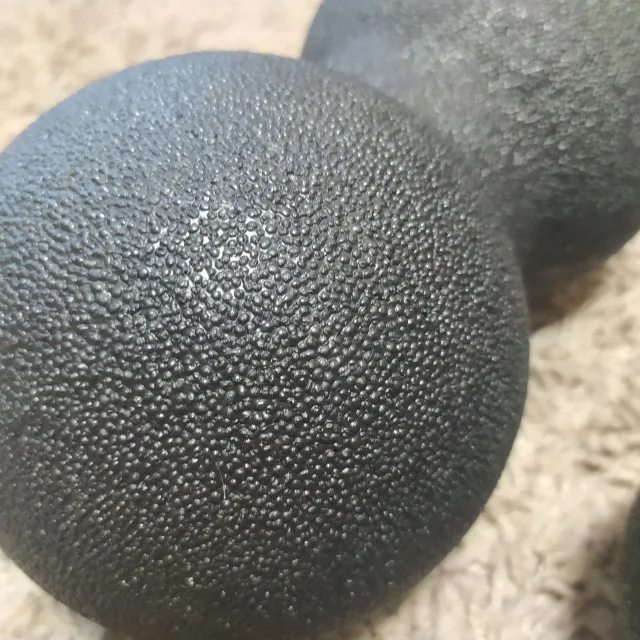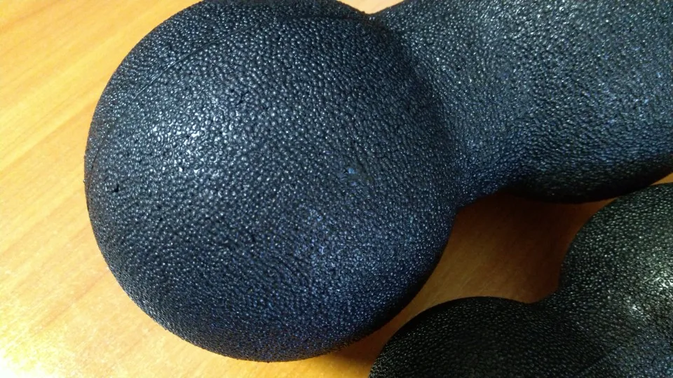 Отличный шар для МФР. В меру жёсткий, очень лёгкий. Материал похож на вспененный, очень плотный пенопласт. Проминает здорово, рекомендую.