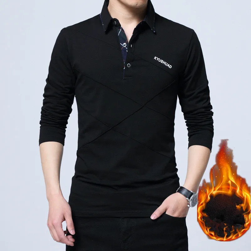 Футболка мужская хлопковая, с длинным рукавом и V-образным вырезом