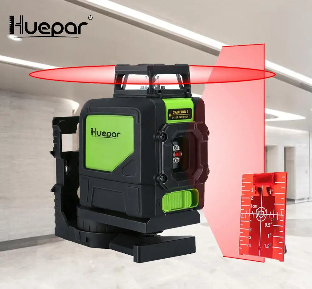 Huepar 5 линий 3D перекрестный лазерный уровень с красным лучом Вертикальные Горизонтальные лазеры 360 вращающиеся самонивелирующиеся профессиональные нивелирующие инструменты