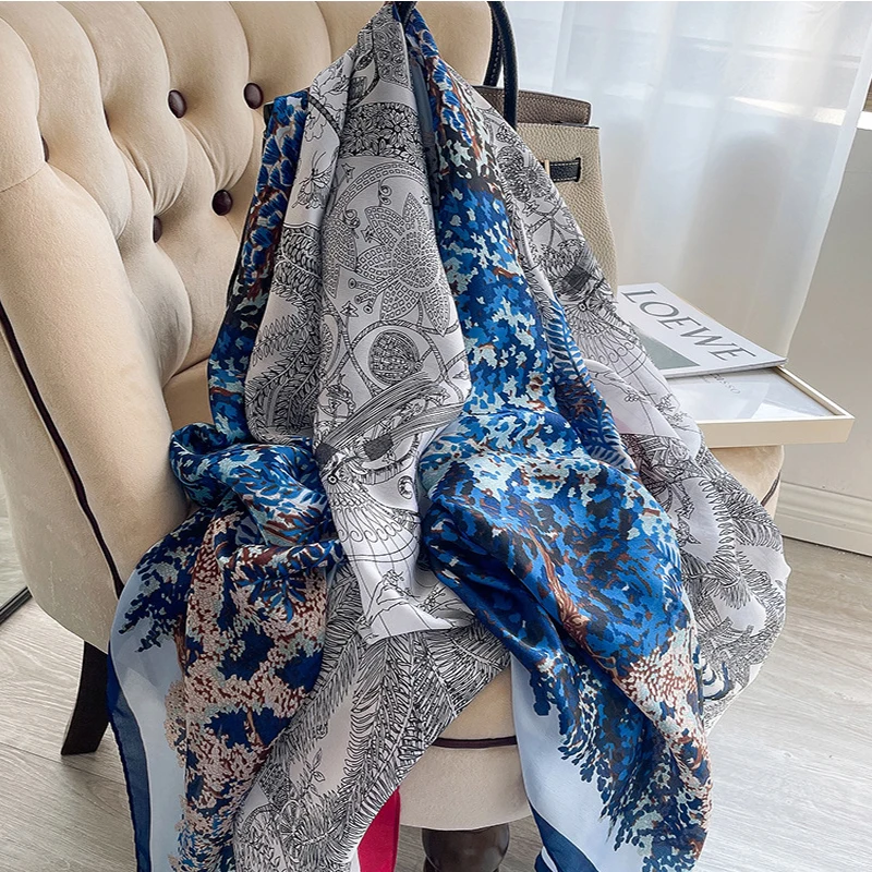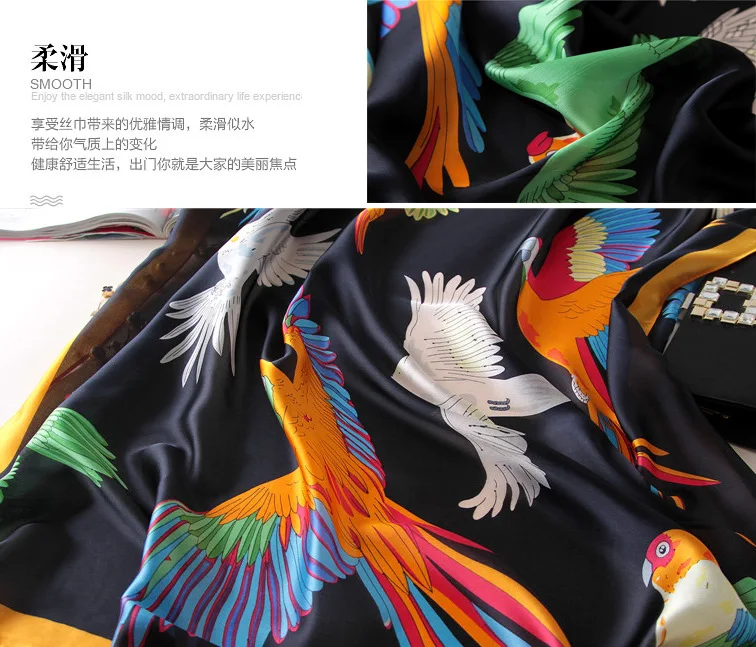2022 Классический женский шелковый шарф, женские шарфы, женская Пляжная накидка, шифоновая шаль с принтом попугая, Солнцезащитная бандана, платок, шарф