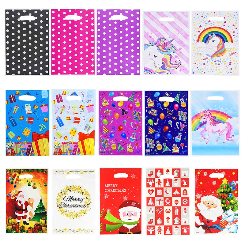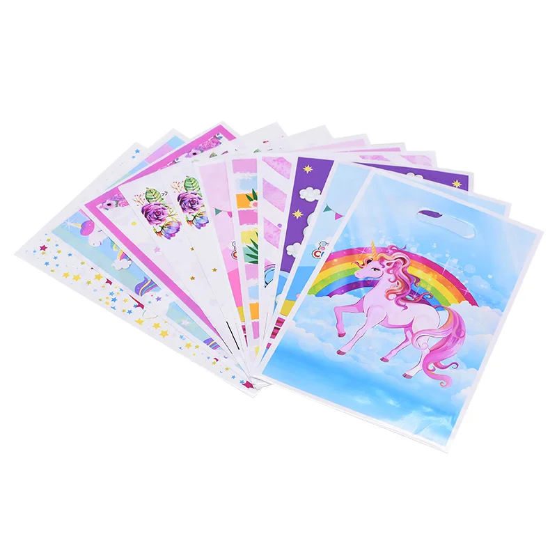 10 шт.лот, Подарочная сумка 17*25 см в виде милого единорога, пластиковая сумка в горошек для детей, товары для дня рождения, свадьбы, вечеринки, комплект декора, сумка конфет