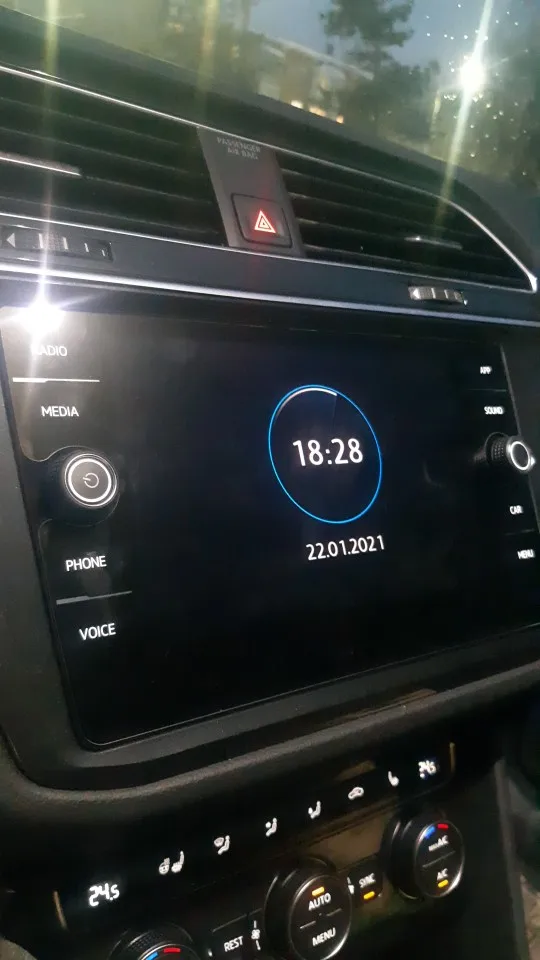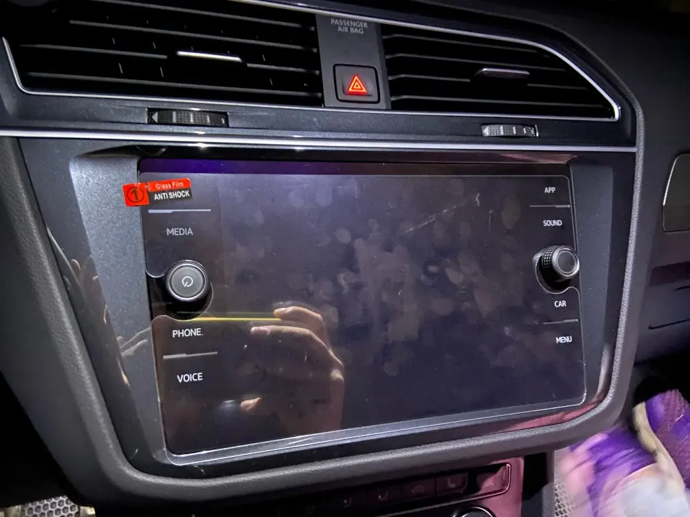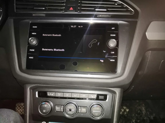 Приклеил сразу в Тигуан, но на 1 миллиметр бы выше само стекло и полностью закрыло бы дисплей