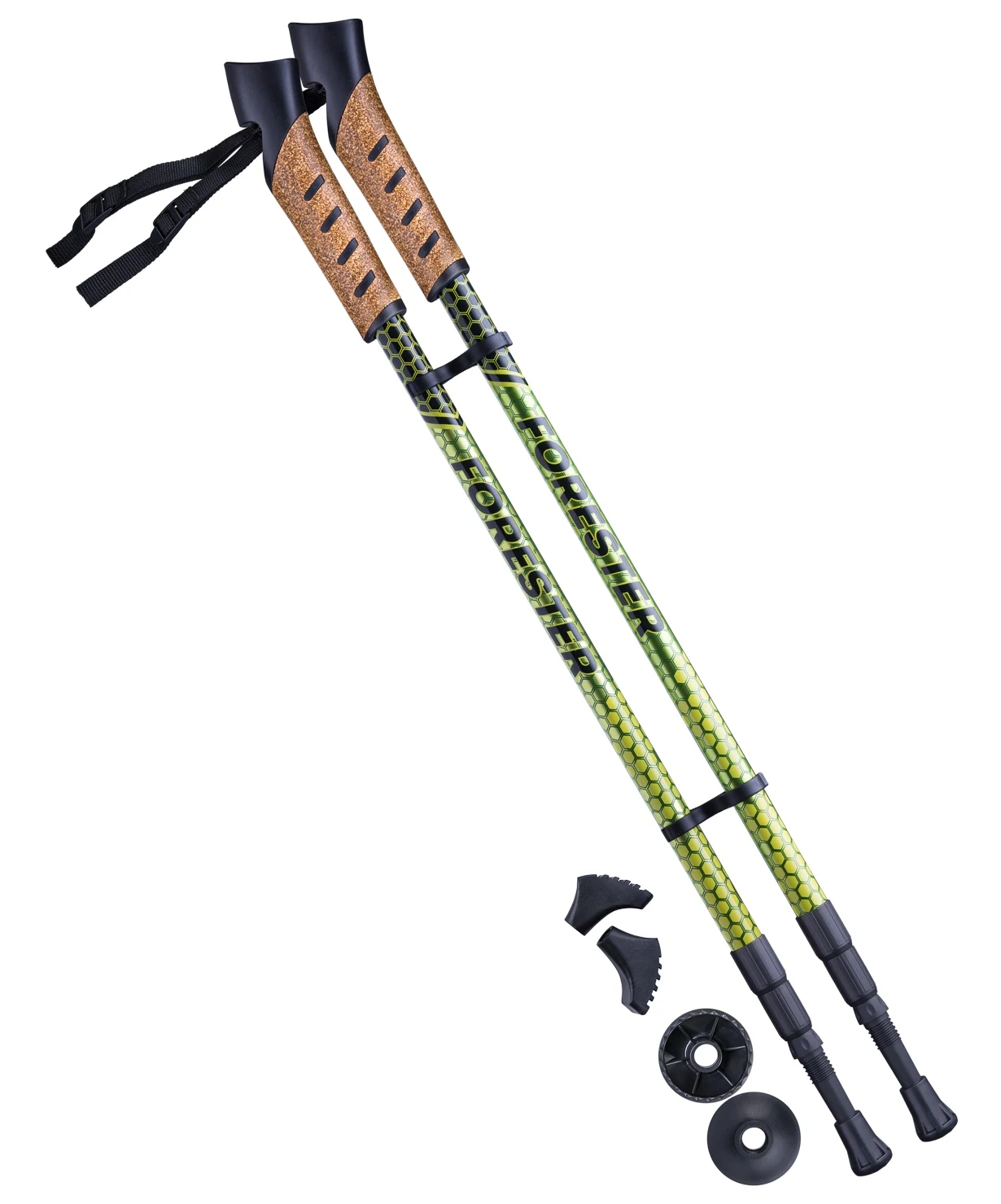 Телескопическая система раздвижения позволяет сложить палки до минимального размера для удобного хранения и транспортировки. Пластиковые фиксаторы устойчивы к перепадам температур, что позволяет использовать палки в любом сезоне. Надежная система амортизации (технология Anti-Shock) значительно снижает нагрузку на запястья, компенсируя неровности любых поверхностей. Характеристики:Назначение: для ходьбы по асфальту, песчаному грунту и снегуВес пары, гр: 495Материал палки: алюминий 6061Количество секций: 3Длина палки, см: от 67 до 135Диаметр секции, мм: первой внутренней – 14; второй внутренней – 16; внешней - 18Толщина сечения секции, мм: 1Система раздвижения: телескопическаяМатериал ручки: пробка + полипропиленНаличие ремешка/темляка: съёмный ремешок с возможностью заменыРегулировка длины съемных ремешков: естьКомплект ограничительных колец: есть Материал подпятников: резинаМатериал наконечника: стальНаличие системы Anti-Shock: естьДиапазон рекомендованной температуры: от -35° до +40°Цвет: болотный/желтыйВ комплекте: 2 пары подпятников разной формы для комфортной ходьбы по разным поверхностямГарантия: 6 месяцевПроизводство: КНР
