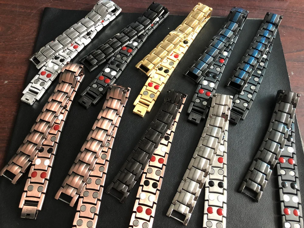Мужской стальной браслет для магнитной терапии, лечебный био-магнит...
