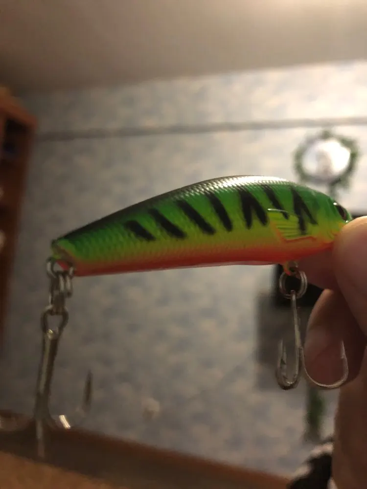 Заказ пришел очень быстро, спасибо продавцу! Воблер покрашен хорошо, крючки прочные и острые, колечки лучше поменять и проклеить петли.