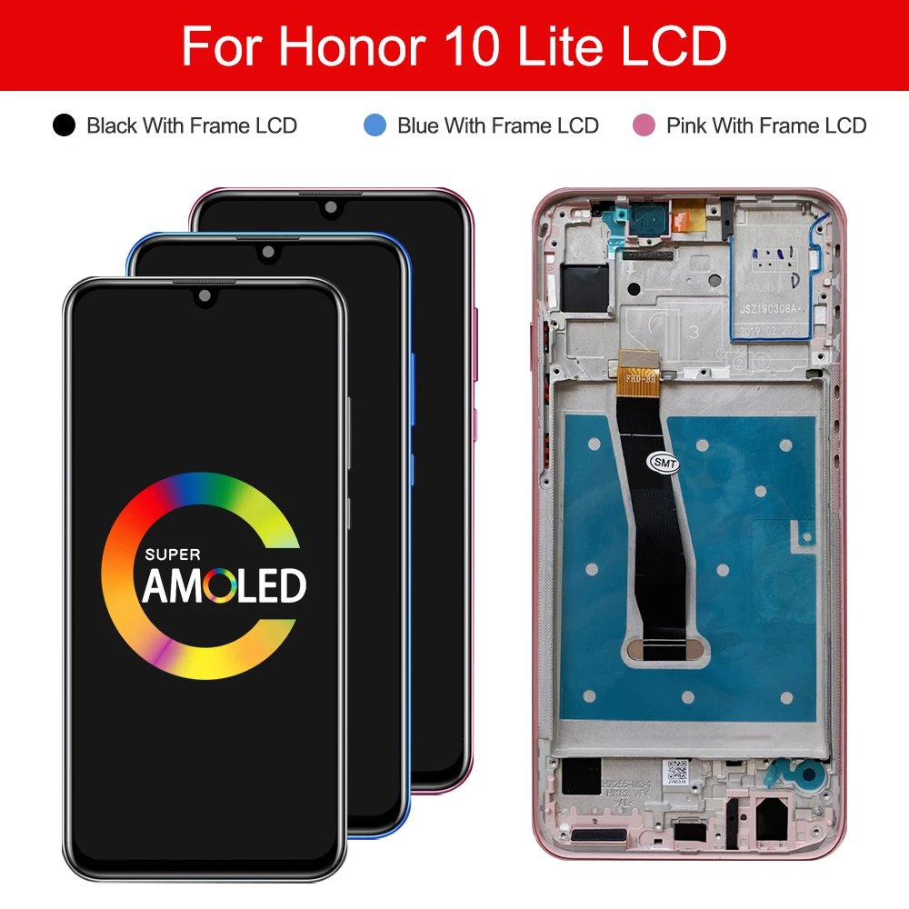 Дисплей для Huawei Honor 10 Lite, ЖК-дисплей с сенсорным экраном, дигитайзер с рамкой для Huawei Honor 10 Lite, HRY-LX1, черный