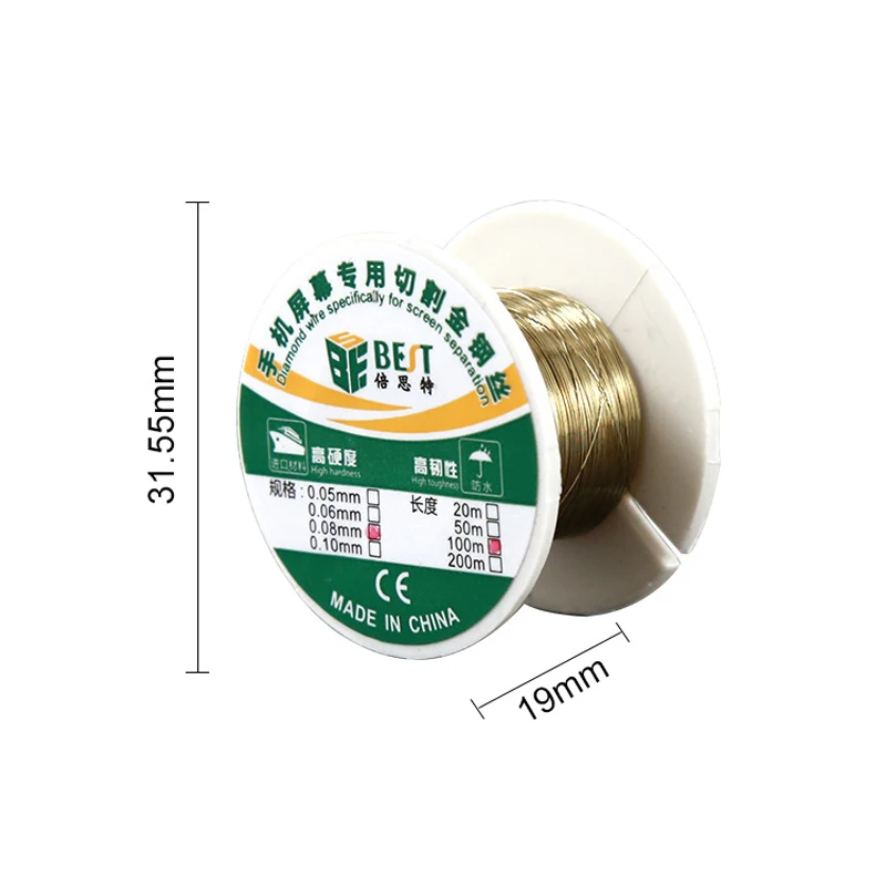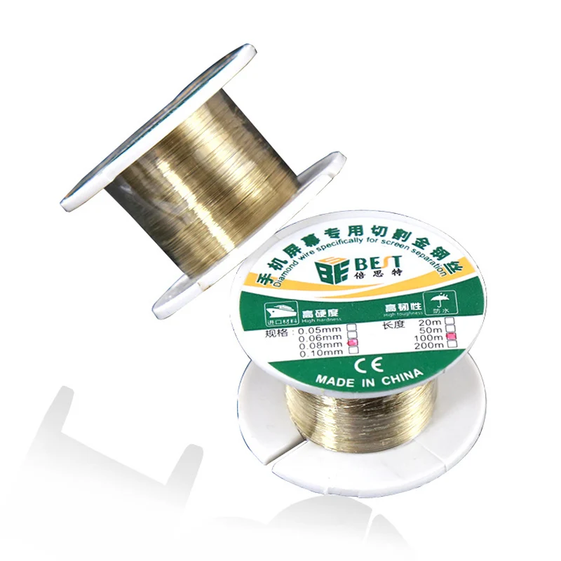 Линия резки из легированной стали 100 м 0,05 мм 0,06 мм 0,08 мм 0,1 мм, молибденовый провод для разделения ЖК-экрана телефона