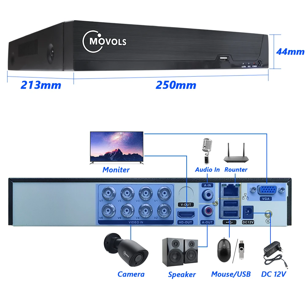 Movols 8CH 5MP H.265 AHD 5 в 1 DVR цифровой видеорегистратор для CCTV HDMI видеовыход поддержка аналоговых AHD-камер