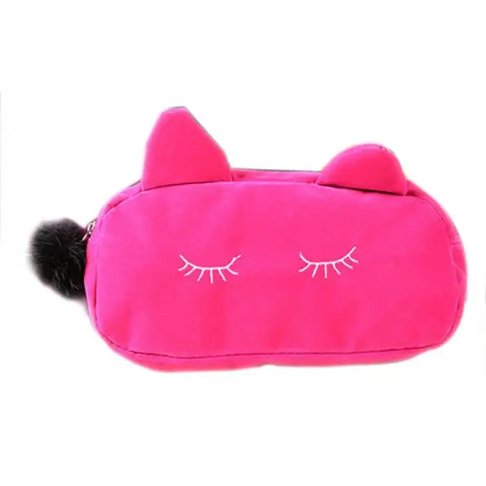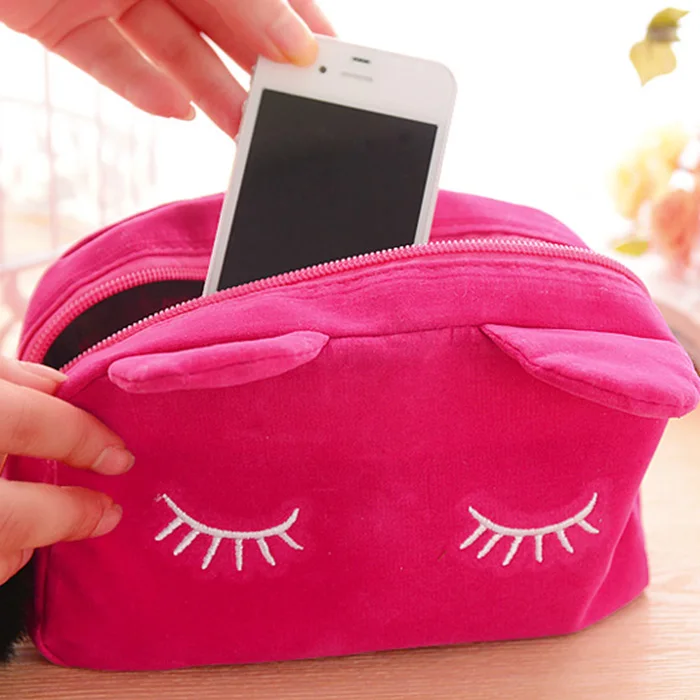 Милый портативный вместительный органайзер для хранения косметики с мультяшным котом, бархатная сумка для хранения косметики, домашняя дорожная сумочка для косметики