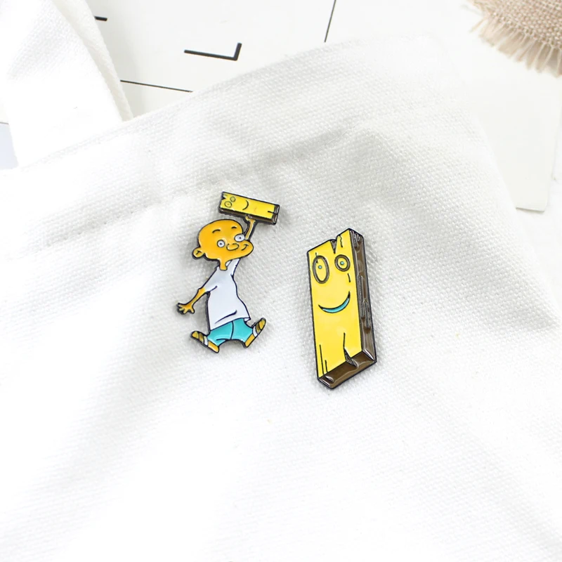 "Ed edd n eddy брошь анимированная мультяшная Милая желтая деревянная планка лысый маленький мальчик Эмаль Булавка для ребенка друзья ювелирные изделия подарок"