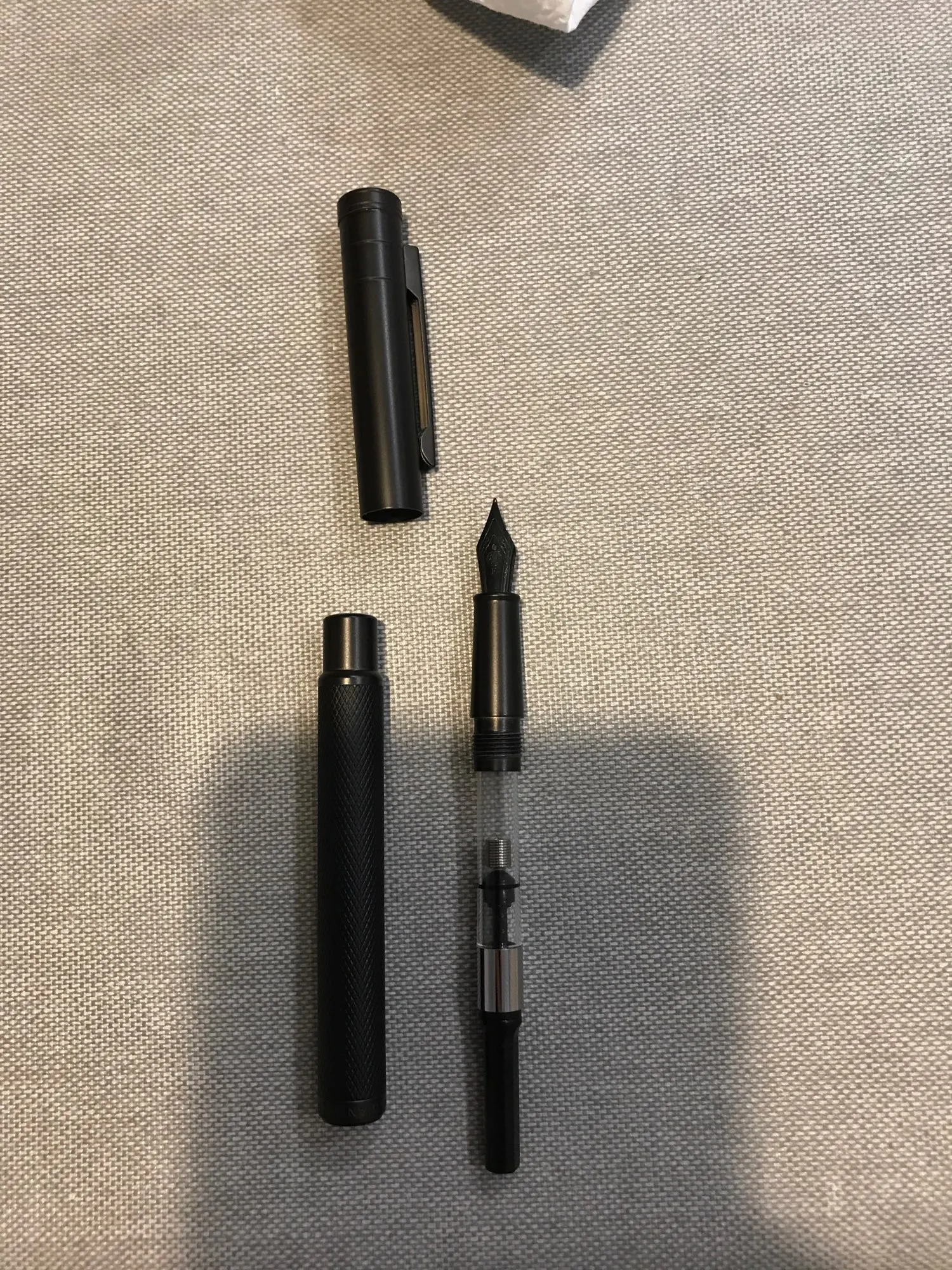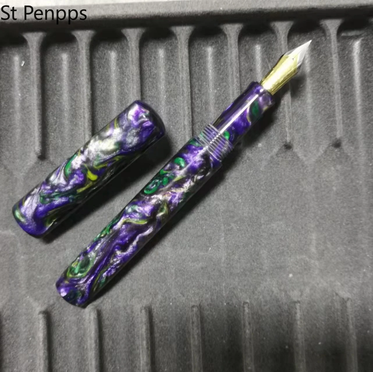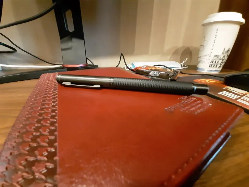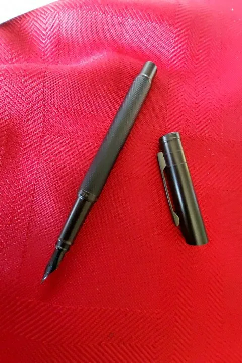 Ручка очень хорошая. Он имеет приятный вес. Крышка крепится вверху, но она делает ручку несимметричной. Гораздо лучше писать без кепки. Наконечник очень гладкий и хорошо записывает. Я очень впечатлен ручкой.