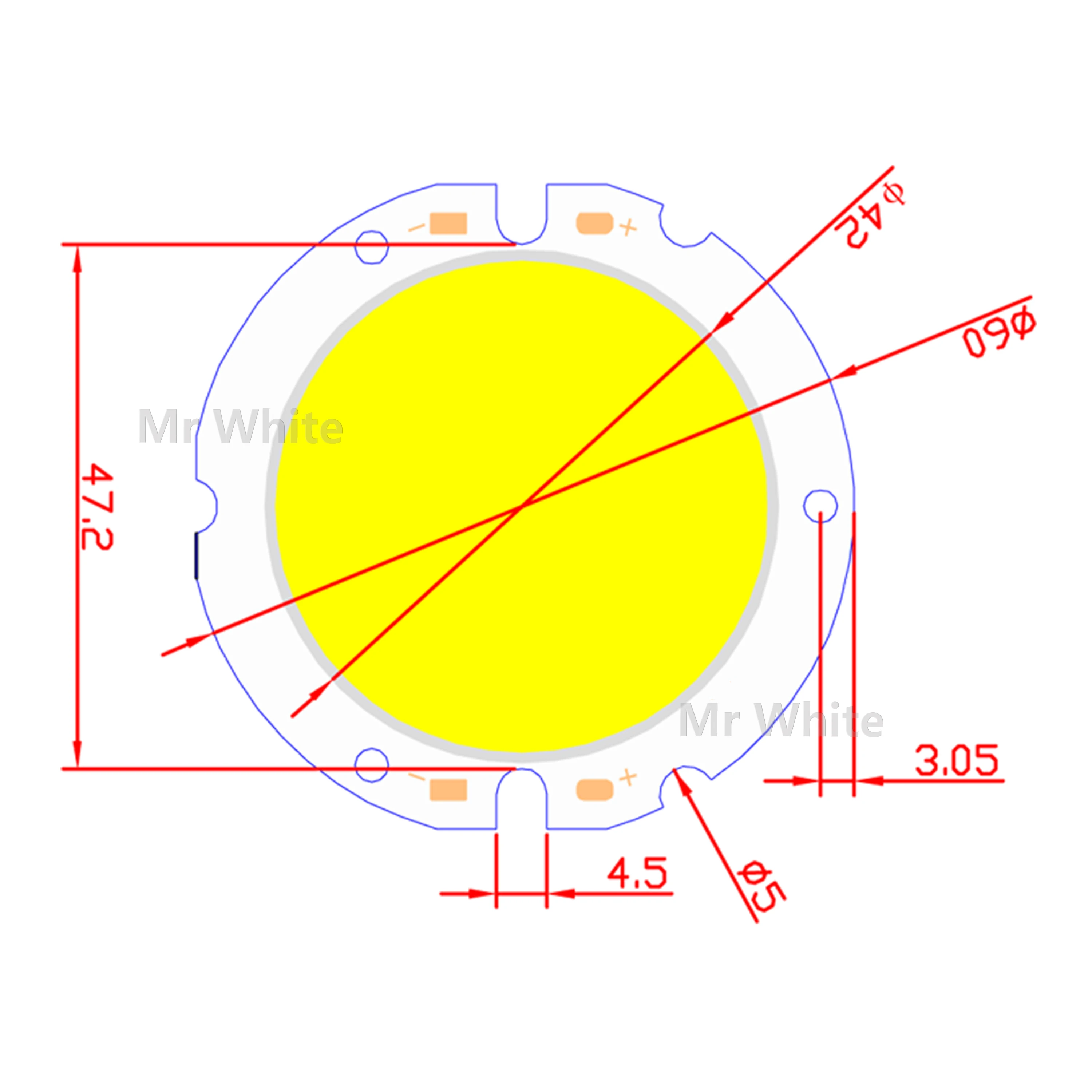 Длина60mm round COB LED Chip
