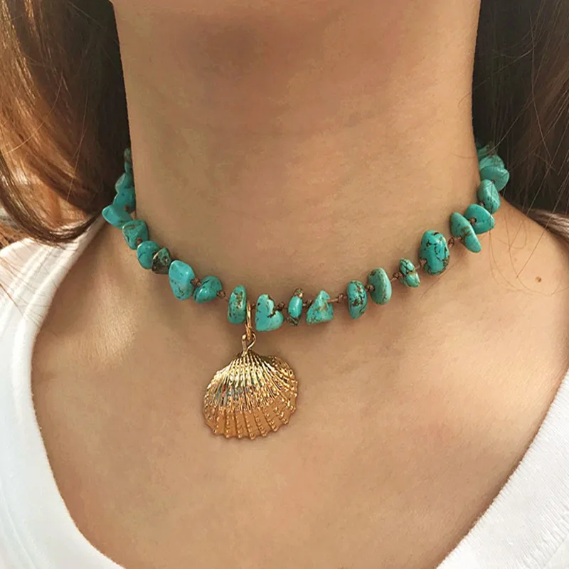 Богемное женское длинное ожерелье с подвеской в виде ракушки коровы