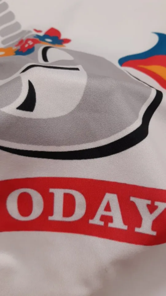 Яркий принт. Но огорчает то, что футболка сшита из синтетического трикотажа.