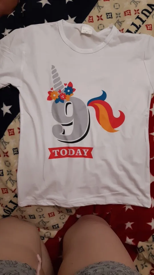 К сожалению, блузка очень длинная, не подходит для дня рождения. Но очень классный материал. Мягкий, эластичный хлопок. Аппликация выглядит аккуратно. Рекомендуем брать Rozm больше, чем одежда для малышей, потому что достаточно malutkia.