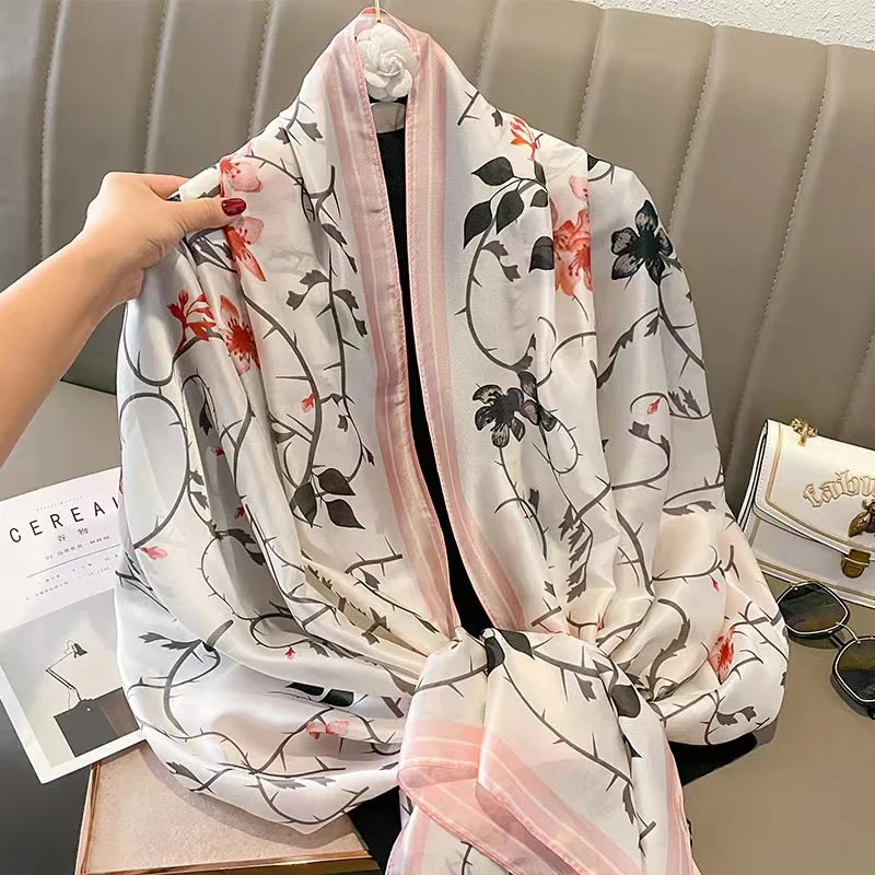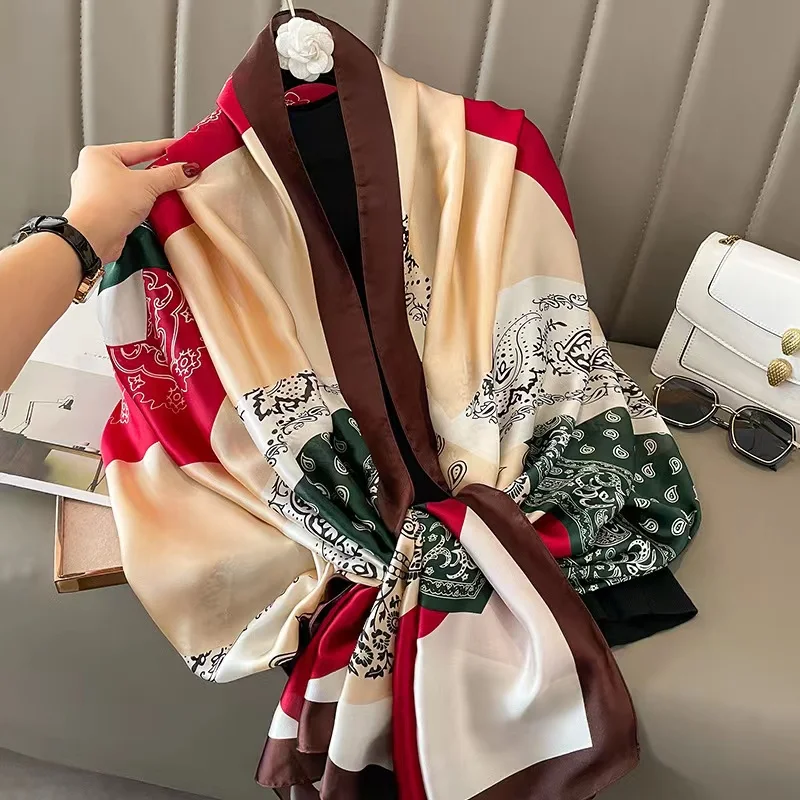 Роскошные брендовые Шелковые летние женские шарфы 180*90 см, женская Пляжная накидка, шифоновая шаль, модная парео