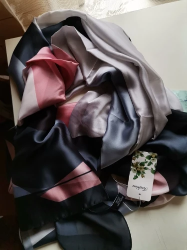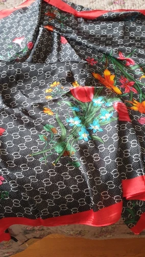шарф очень красивый, ткань, конечно, искусственная, но на ощупь похожа на натуральный шелк