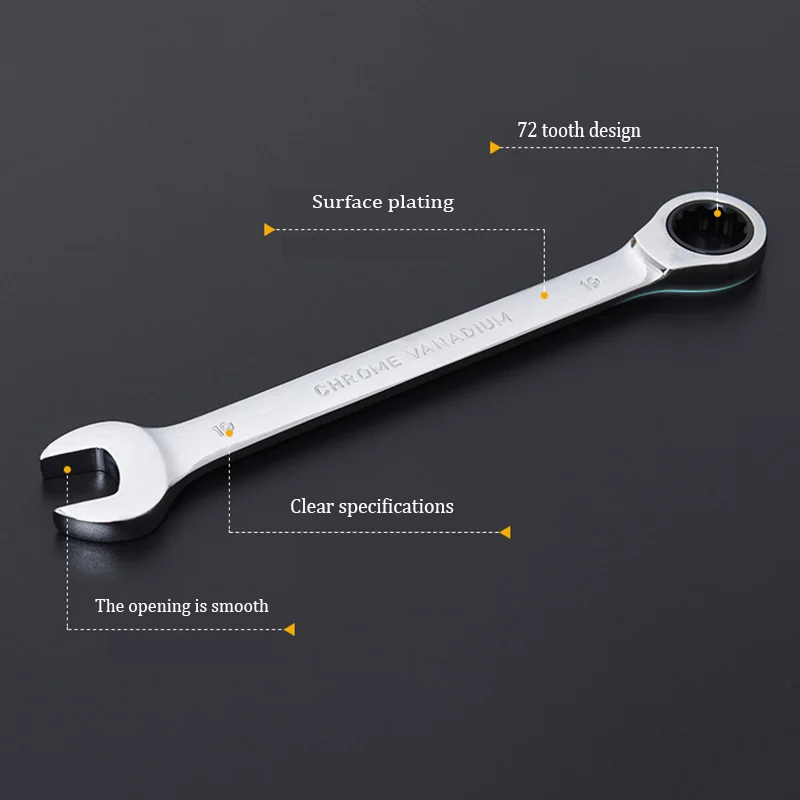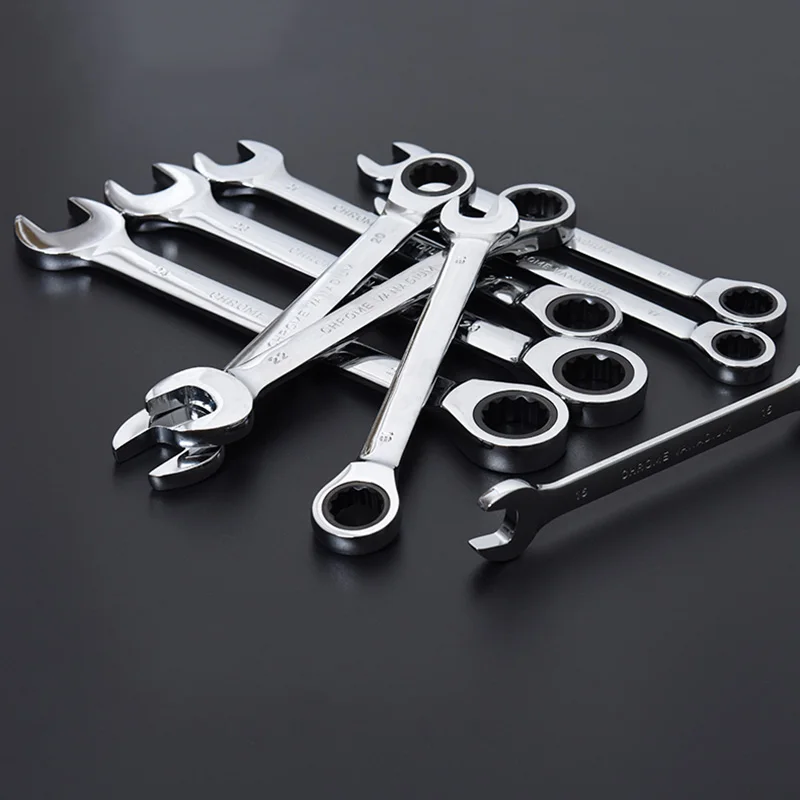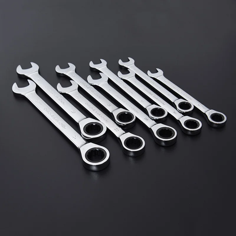 Набор гаечных ключей, комплект комбинированных инструментов с храповым механизмом из хромованадиевой стали, инструменты для ремонта, 12 шт., 8-19 мм