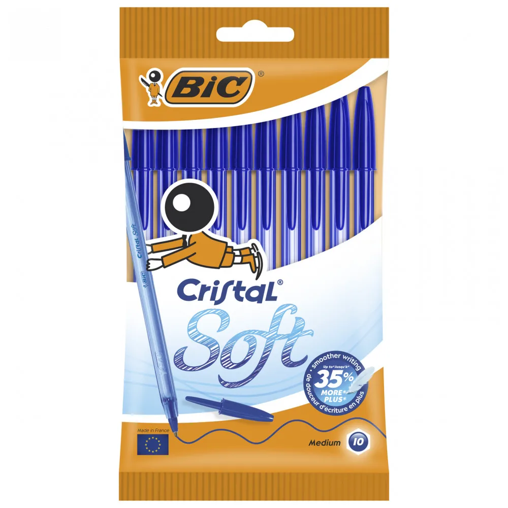 Ручка шариковая, синяя, среднее письмо, BIC Cristal Soft, уп. 10 шт.
